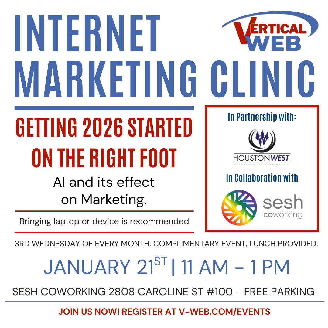 Internet Marketing Clinic Schedule January 2026 Only ONE Class This Month! Be sure to sign up so you don’t miss it! Wednesday, January 21st – In Person Register Here Internet Marketing Minute NEW! We are excited to annouce that we are adding a daily marketing tip of the day.  Join our Follow our TikTok or […]